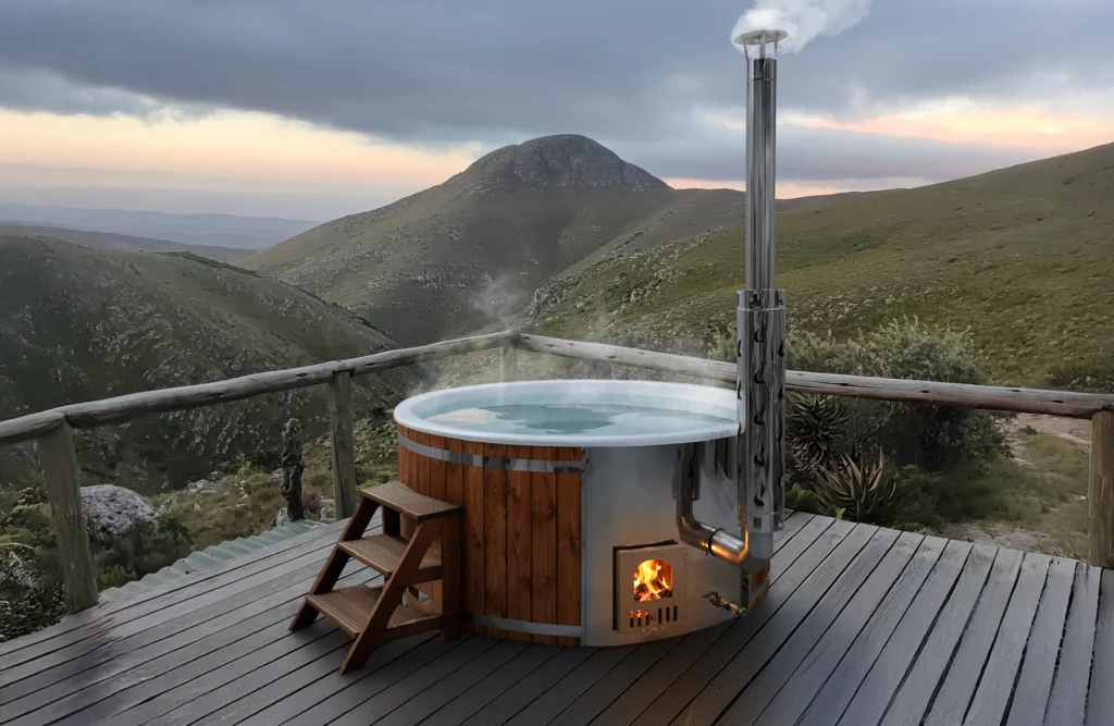 Im Gegensatz zu einem herkömmlichen Whirlpool verfügt ein Badezuber oft über eine natürliche Heizquelle wie einen Holzofen und verzichtet auf komplexe technische Ausstattung wie elektronische Steuerungen.